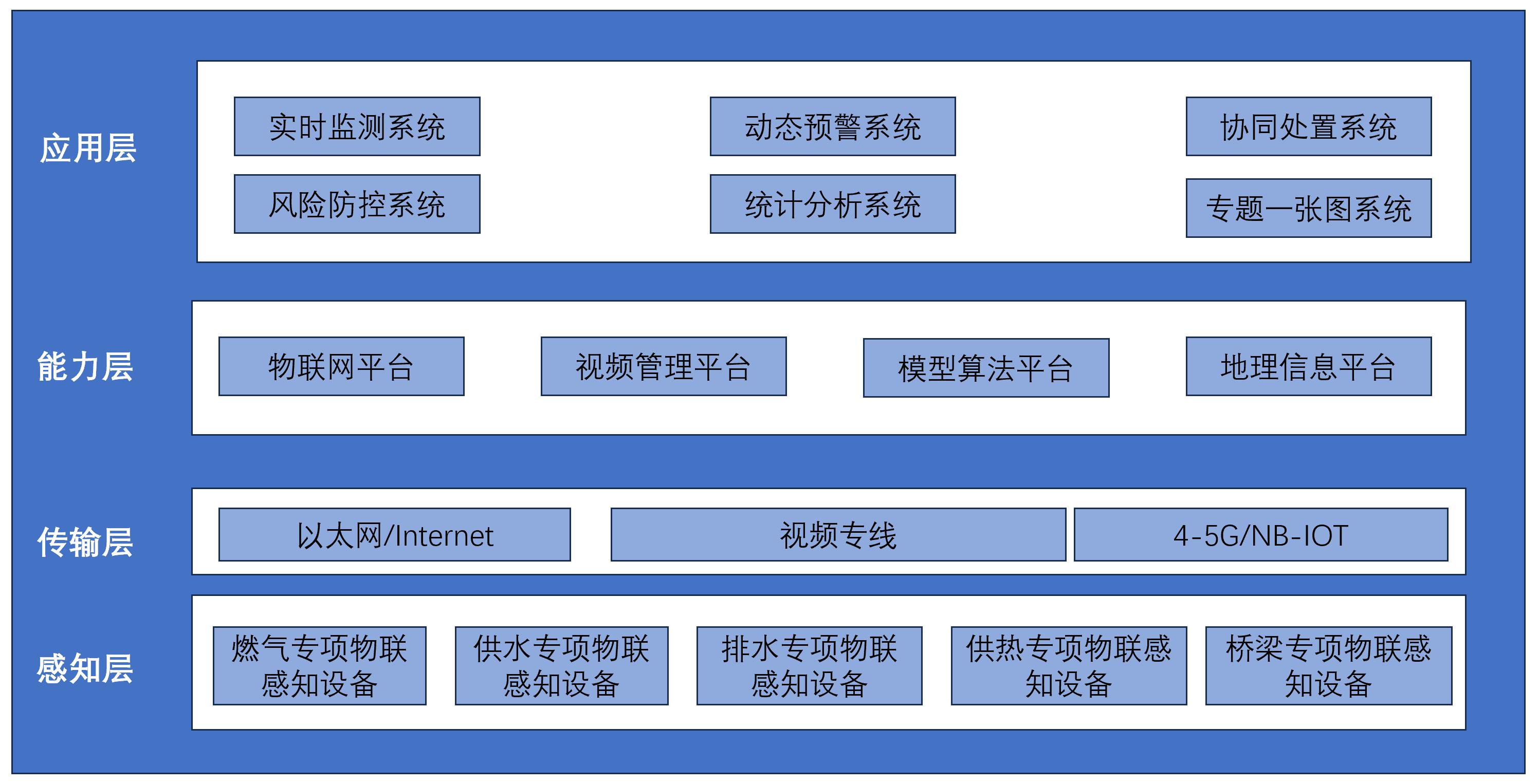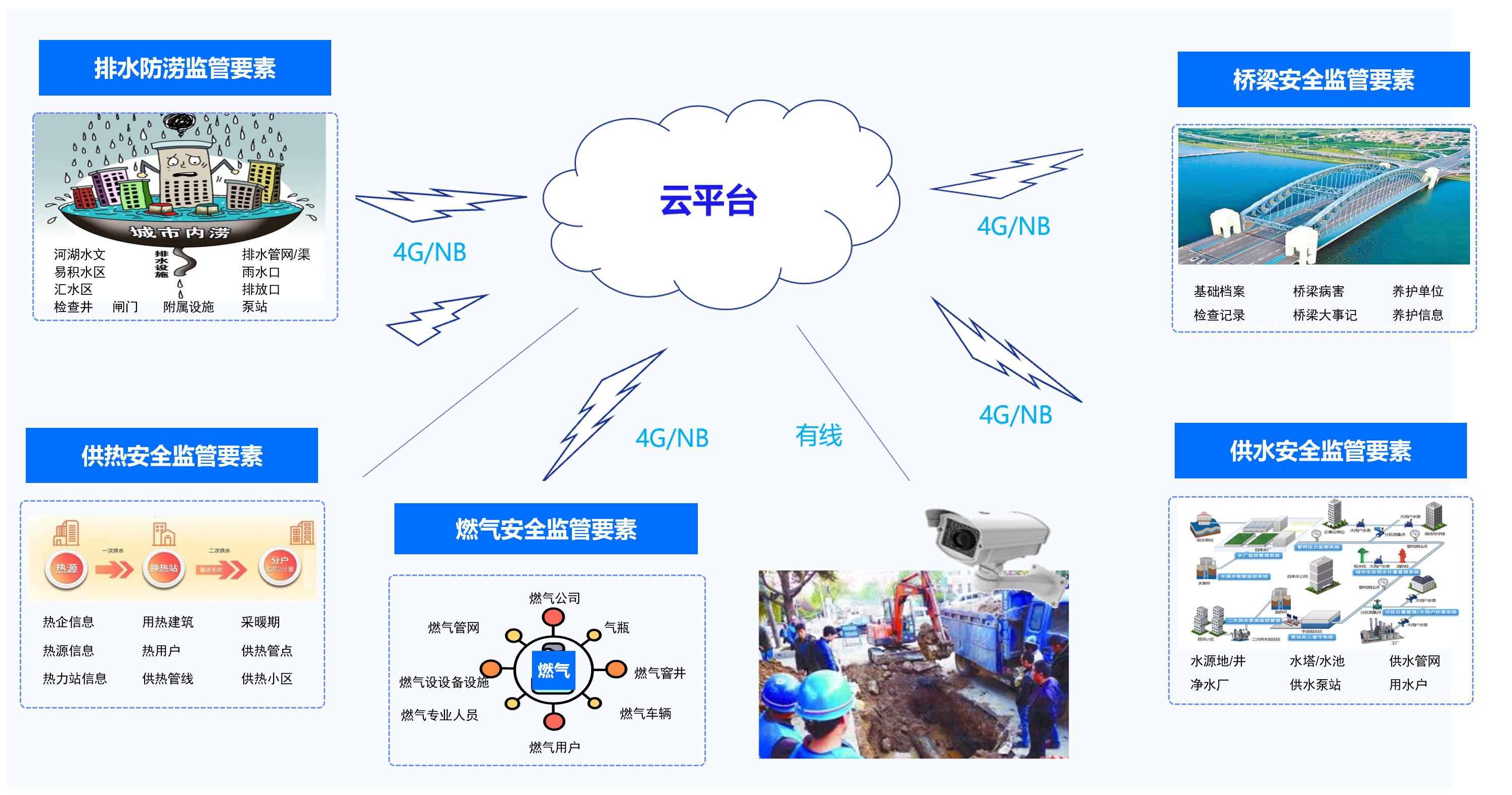 ◆ 借助物联网、大数据、云计算等信息化技术手段,围绕燃气、供热、桥梁、供水、排水等方面构建城市生命线安全运行感知网,推进城市生命线运行监测的集约建设、资源共享,构建全域覆盖的城市安全运行保障体系。